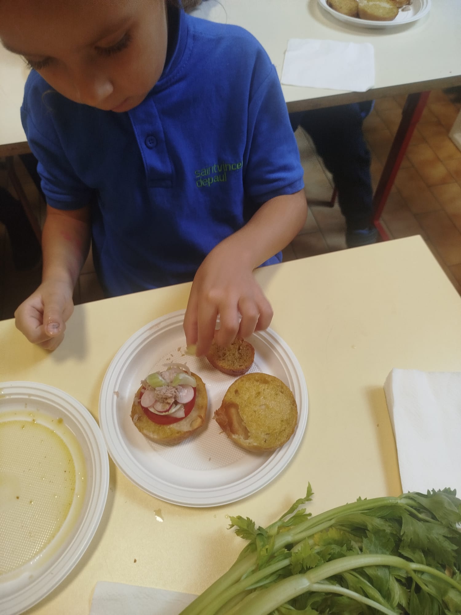 Ecole Maternelle et Elementaire Saint Vincent de Paul à Nice - Semaine du goût M2 dégustation Pan Bagnat